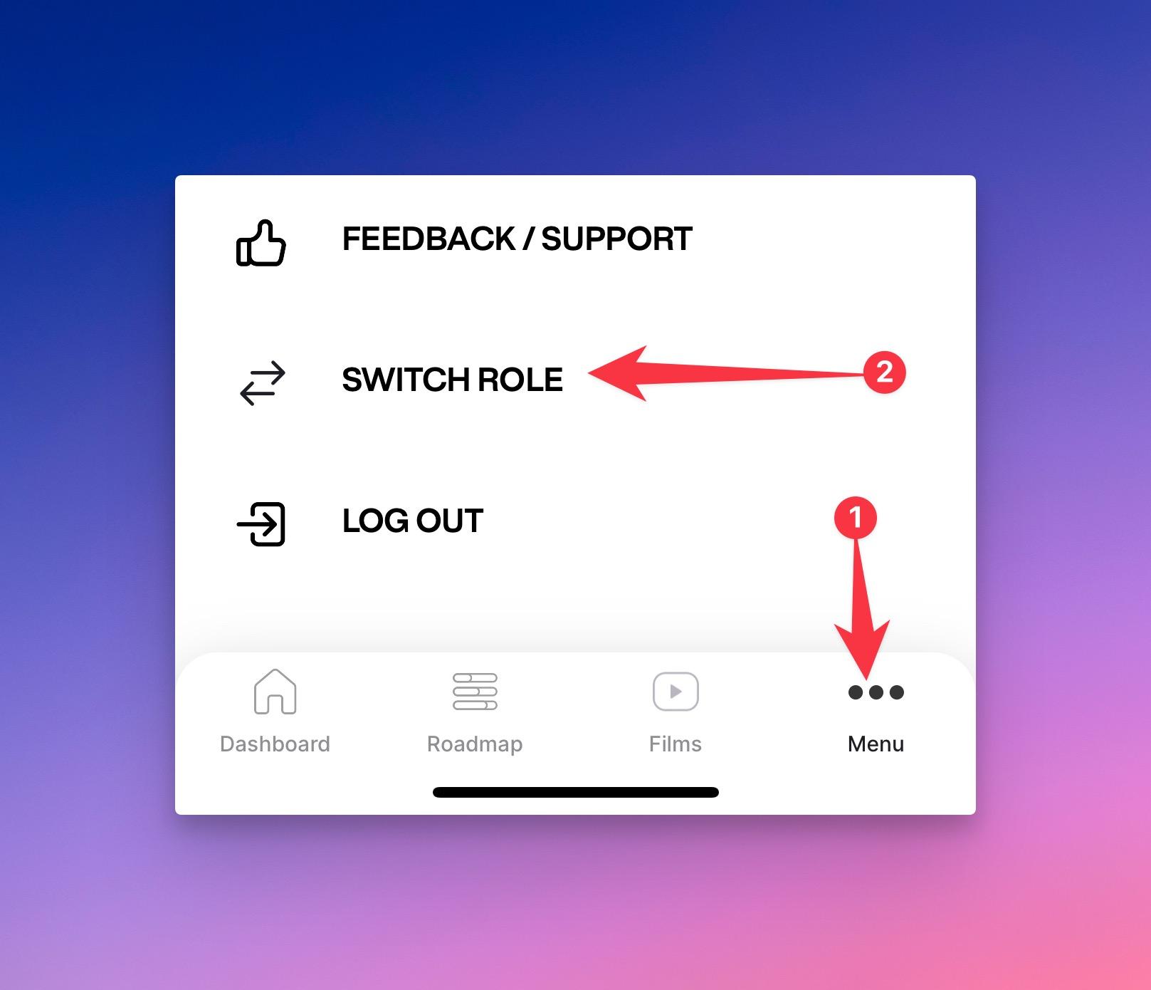 If you selected the wrong role, you can use the "Switch Role" menu item inside the "Menu" screen of the app.